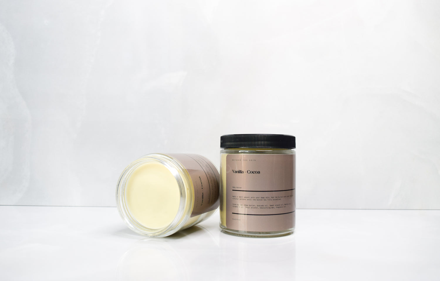 Indulge in our luxurious Vanilla + Cocoa Body Butter. The thick, creamy formula melts into your skin and provides intense hydration for over 24 hours.